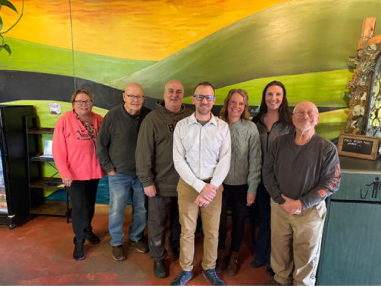Pictured from left to right are: Vicky Fall (EDA), Jim Kraemer (EDA), Doug Schmitz (EDA), Casey Dierkhising (Owner of Cold Press Café ), Kris Dockendorf (City Administrator), Brittany Harrington (EDA), and Fran Ramler (EDA).
